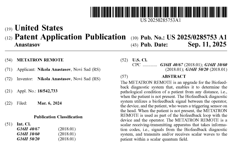 METATRON REMOTE® is a patent-protected (U.S. Pat. No. 20250285753) and trademarked Metatron Hospital system by Medicomat Limited, that enables remote health scanning and treatment at any distance.