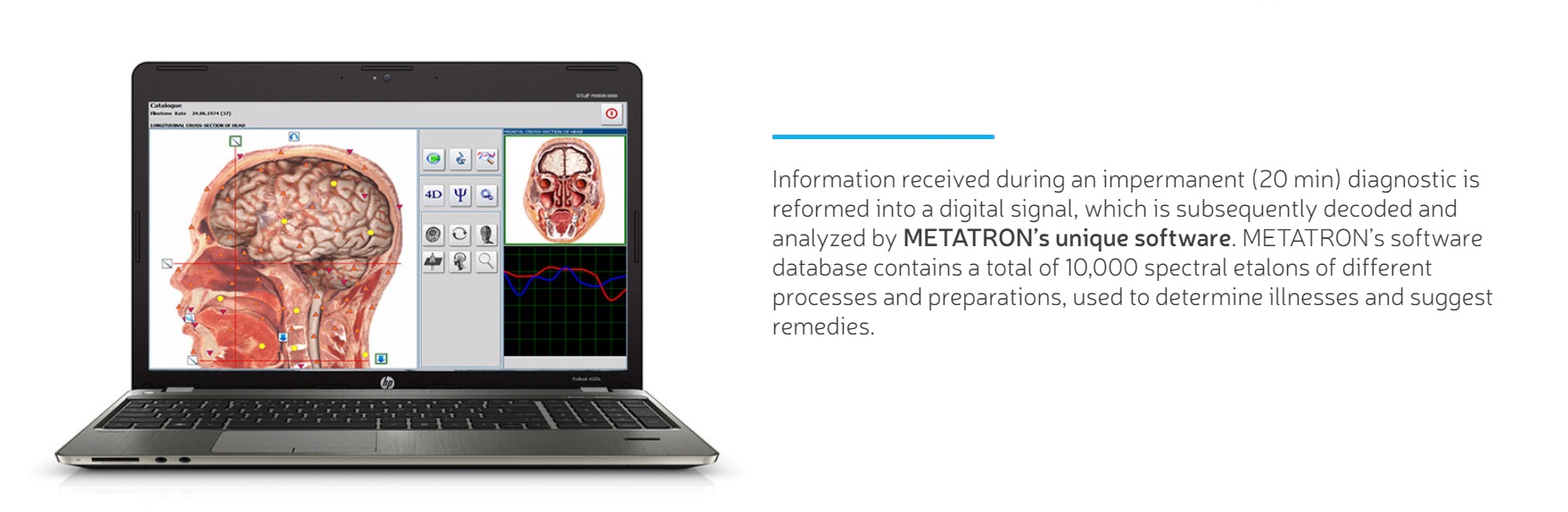METATRON REMOTE® is a patent-protected (U.S. Pat. No. 20250285753) and trademarked Metatron Hospital system by Medicomat Limited, that enables remote health scanning and treatment at any distance.